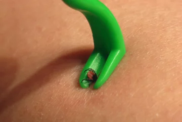 Головне — не панікувати та не експериментувати з "народними методами". Кліща потрібно акуратно видалити пінцетом або спеціальним інструментом, захопивши якомога ближче до шкіри. Не можна використовувати олію, спирт чи інші сумнівні способи – вони можуть лише погіршити ситуацію. Після видалення місце укус обов'язково обробляється антисептиком.